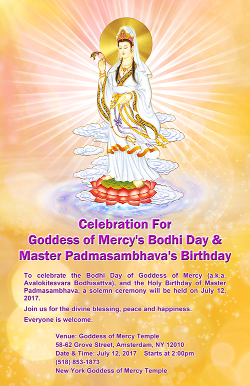 To celebrate the Bodhi Day of Goddess of Mercy (a.k.a. Avalokitesvara Bodhisattva), and the Holy Birthday of Master Padmasambhava, a solemn ceremony will be held on July 12, 2017, at the grand Goddess of Mercy Temple.